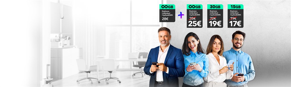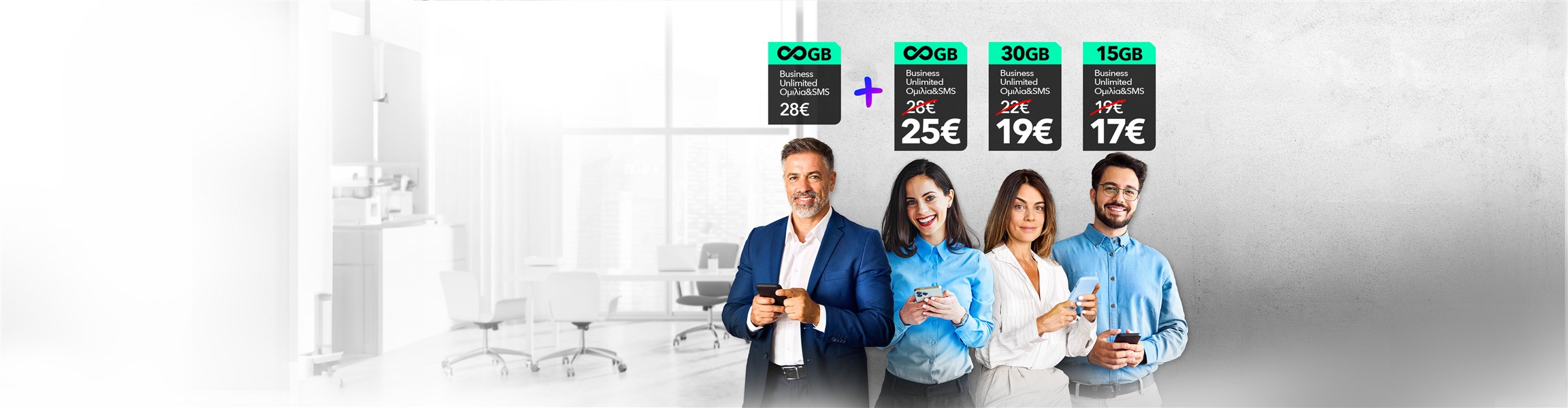 Το σχήμα είναι διαθέσιμο για νέους και υφιστάμενους πελάτες σταθερής και κινητής με προϋπόθεση την προσθήκη μιας νέας γραμμή κινητής στα προγράμματα Business Unlimited Ομιλία&SMS+ 15GB, Business Unlimited Ομιλία&SMS+ 30GB & Business Unlimited All.